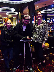 My favourite past time was playing a round or two of indoor crazy golf – the clubs were too short, so I used the tip of my crutch to hit the ball! Ten-pin bowling was another favourite, using the slide I’d knock the ball with my crutch once I’d lined up the slide to where I wanted it to be. I’m sure anyone with FOP or a physical disability can appreciate the importance of adapting, finding our own ways to still do certain things.